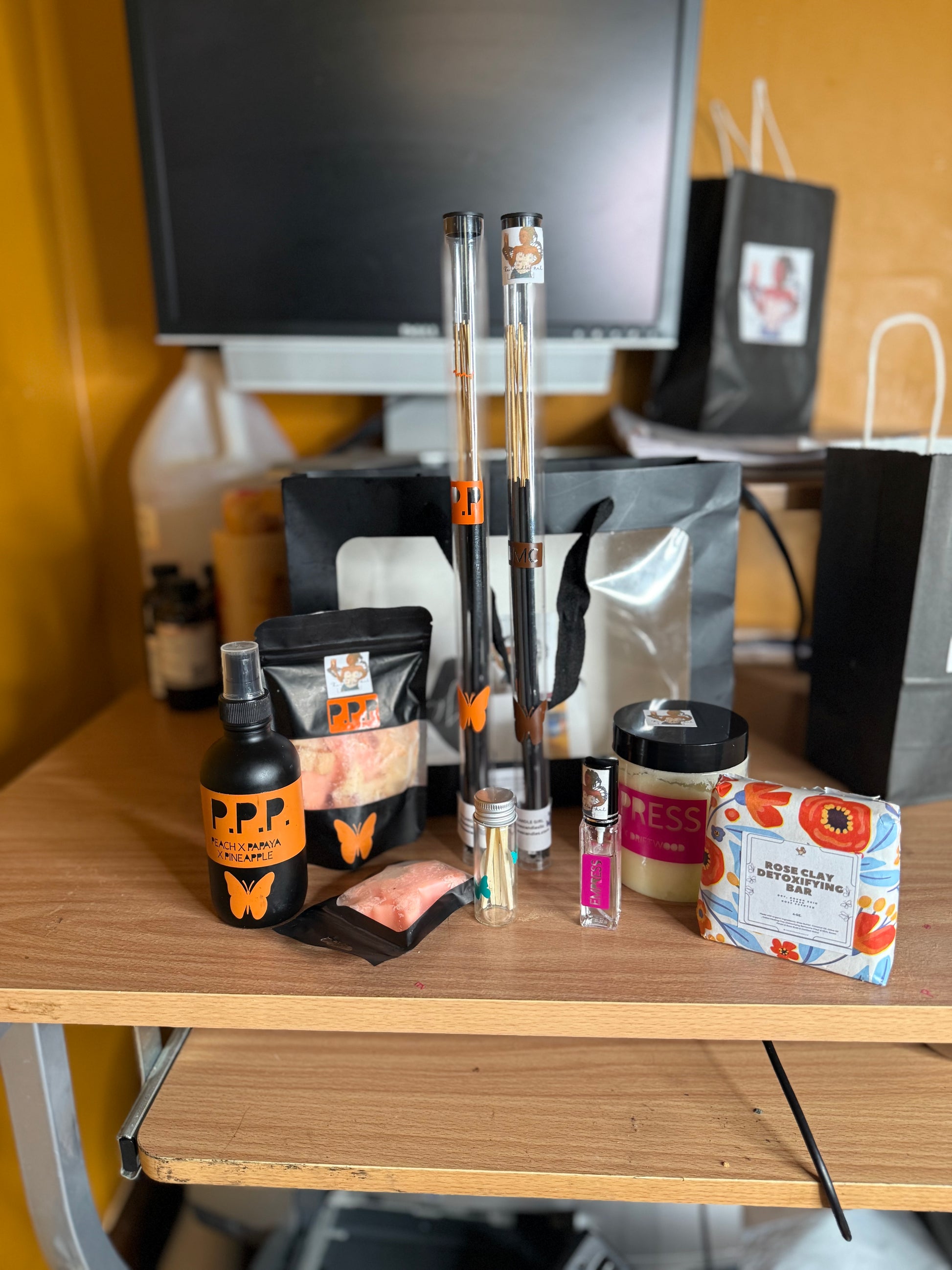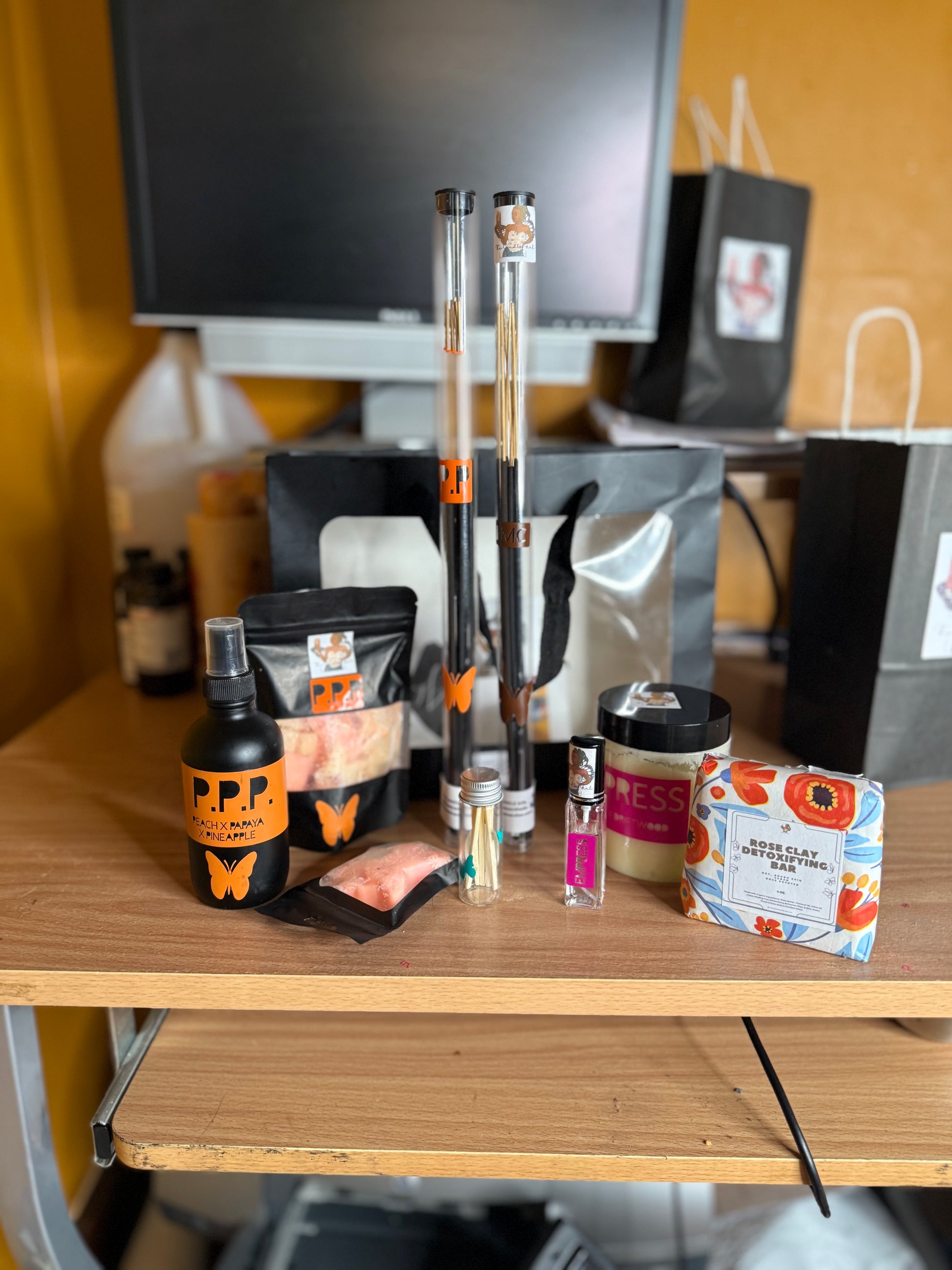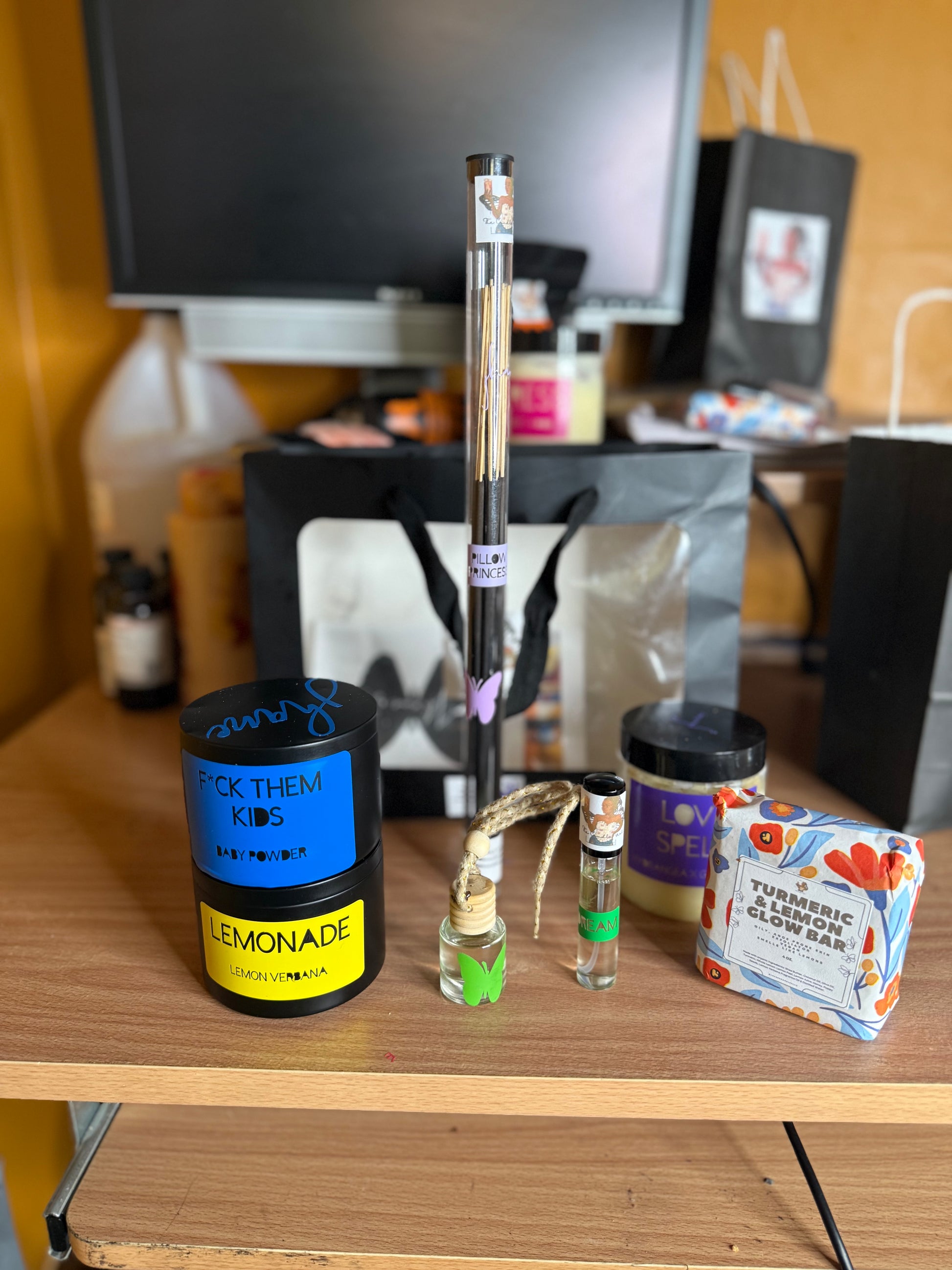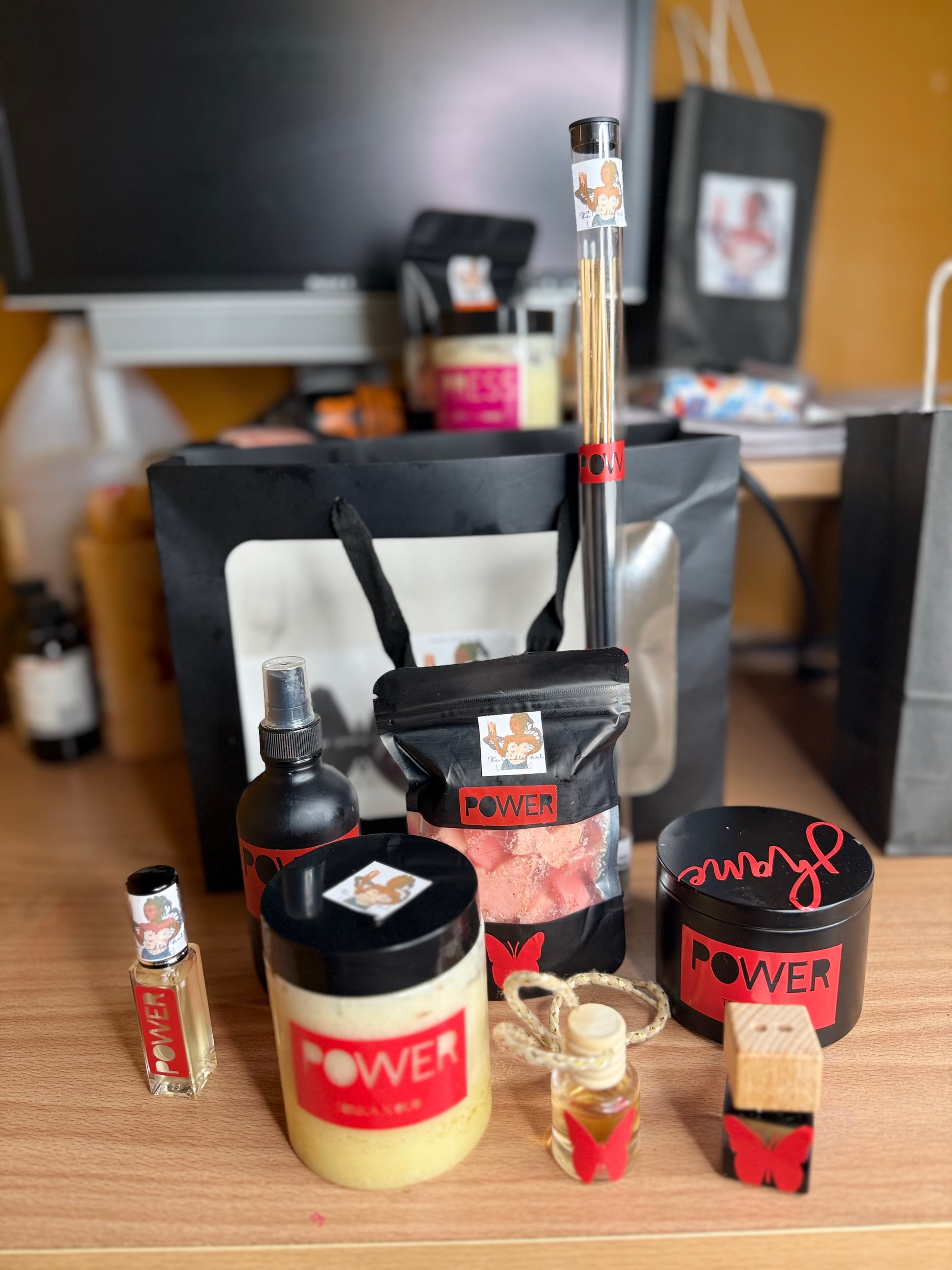 Includes the Candle, Room Spray, Mini Butterfly Bag, Whipped Body Butter, Perfume, Car Diffuser/Vent Clip & Butterfly Car Spray or CUSTOMIZE YOUR OWN! 6 Jhane’s Products for 1 low price