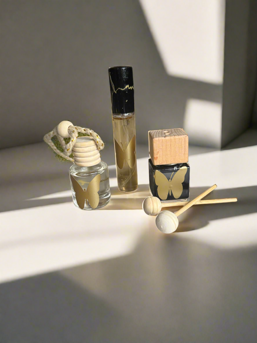 Includes the Car Vent Clip, Butterfly Car Spray & Car Diffuser